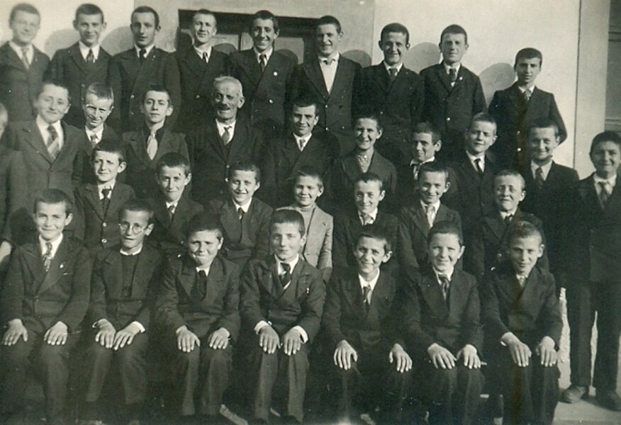 Nella foto i primi Apostolini davanti a Cà Bepin con Don Giovanni Battista Comitti